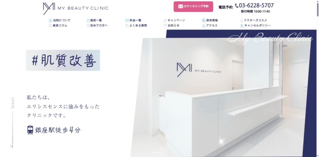MYビューティクリニックは銀座にある美容クリニックで、オンライン診療にも対応しています。
