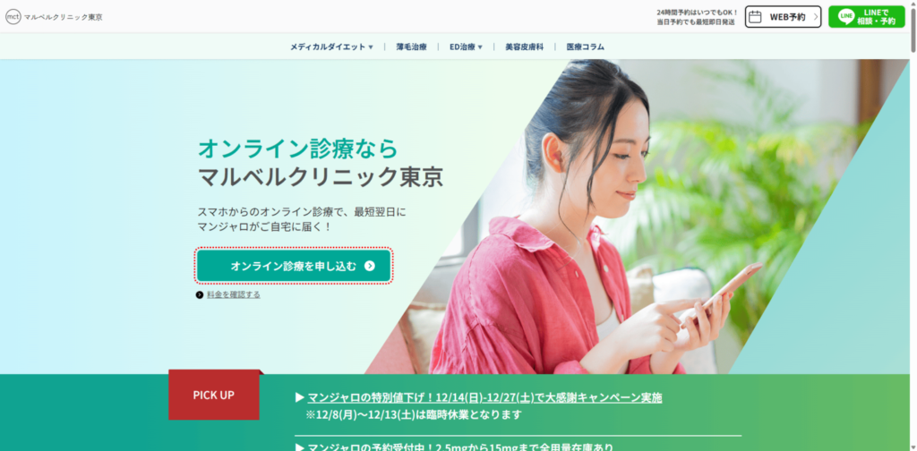 マンクリは、マンジャロ(GLP-1)に特化したオンライン診療クリニックです。