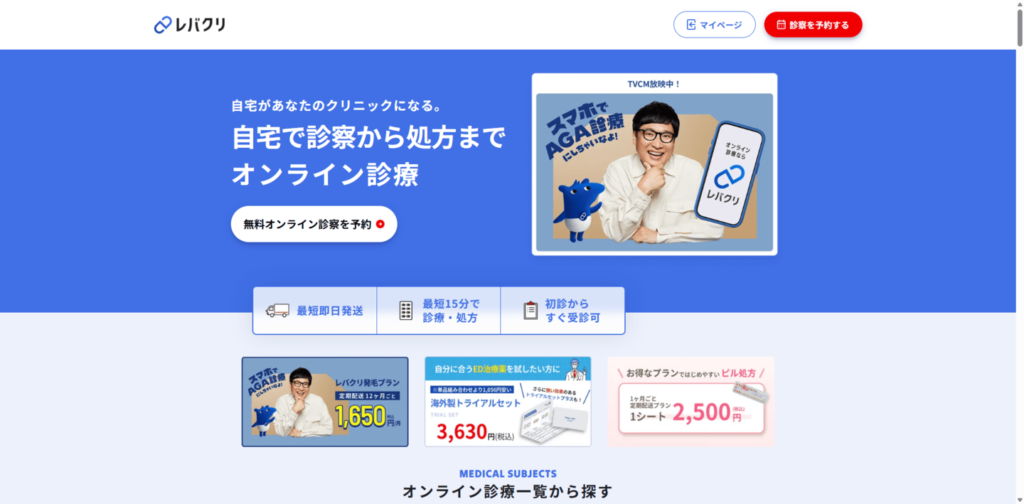 \ 業界最安水準!マンクリなら最短で当日診療もOK /